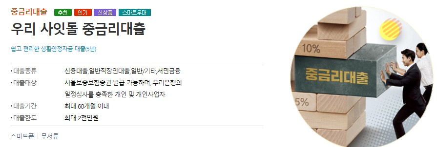 우리은행 우리 사잇돌 중금리대출 특징 및 조건