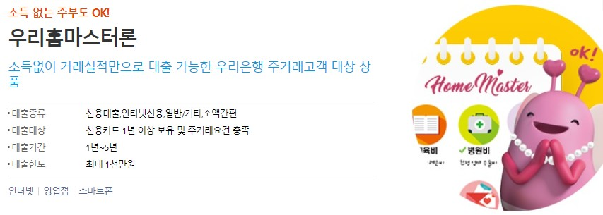 우리은행 우리홈마스터론 특징 및 조건